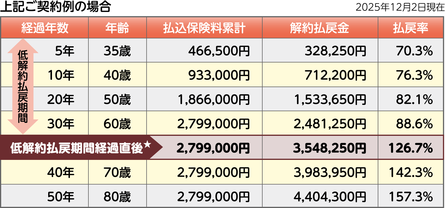 (★低解約払戻期間経過直後の金額を表示しています)。 - ※払戻率(%)=解約払戻金÷払込保険料累計×100